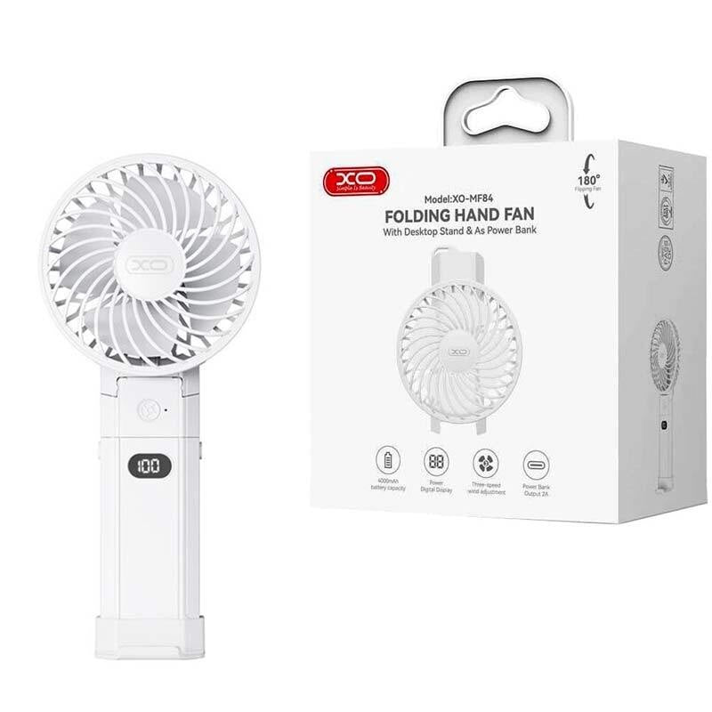 XO MF84 - Ventilator Portabil si Desktop, Suport Pliabil, 3 Viteze, 4000mAh, Alb