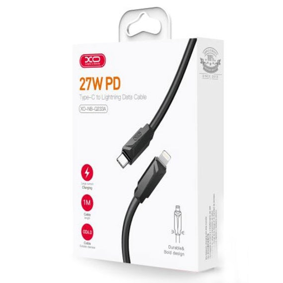 XO NB-Q233A - Cablu Date si Incarcare, USB-C la Lightning, PD27W, QC3.0, 1m, Negru