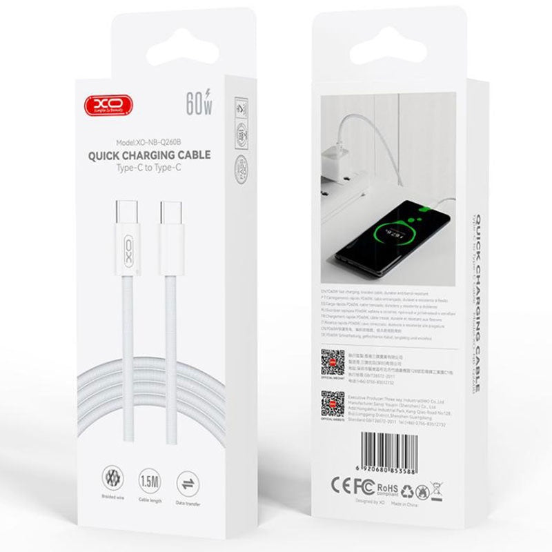 XO NB-Q260C - Cablu USB-C la Lightning, PD27W, QC 3.0, 3m, Textil, Alb