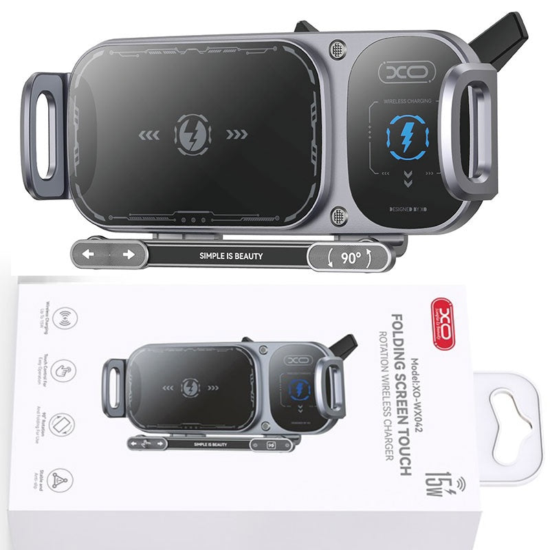 XO WX042 - Incarcator Auto Wireless 15W, Qi Charging, cu Acumulator, Negru